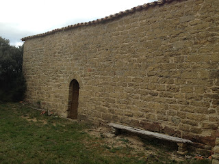 Como la puerta está cerrada con un vencejo, entramos y aprovechamos el abrigo para almorzar. La peana está vacía. El santo "vive" todo el año en la parroquia de Añorbe.